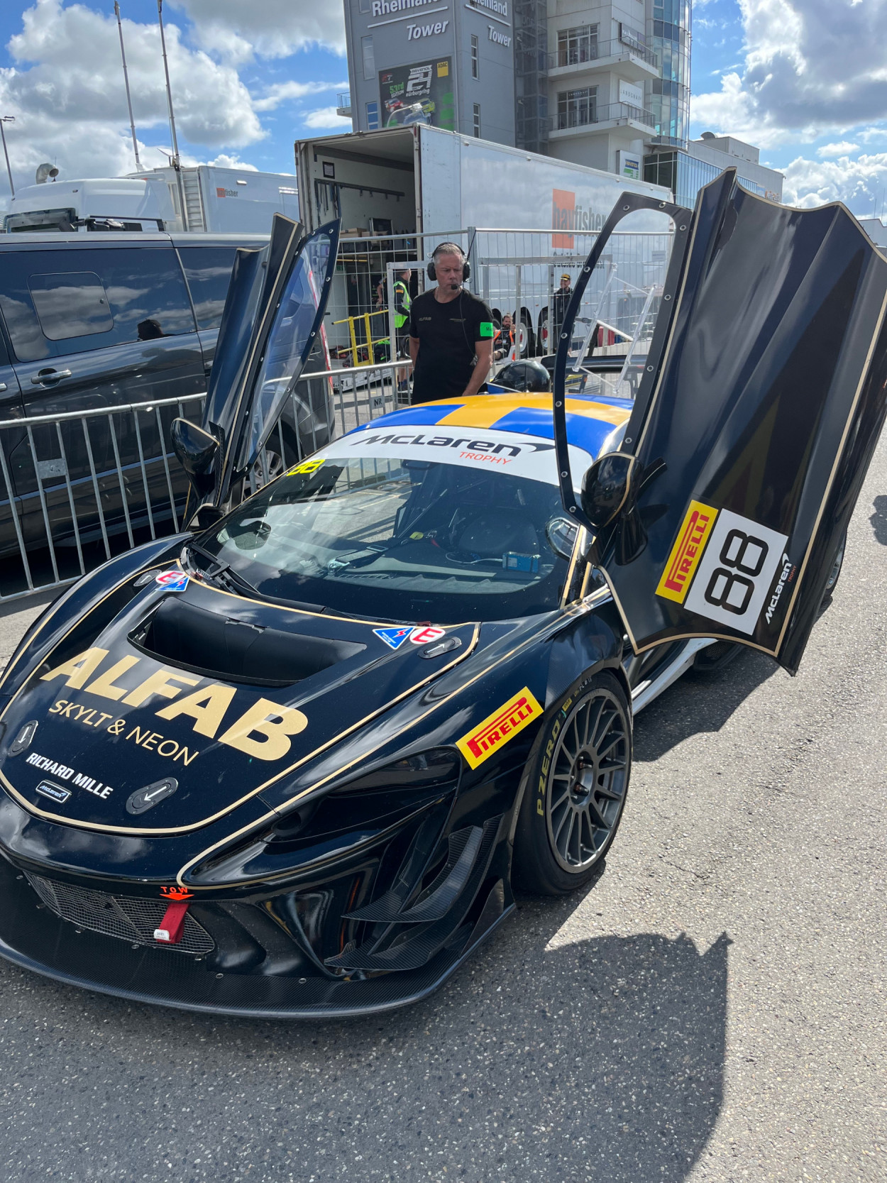Aus dem Bus ausgestiegen konnte man direkt die Motorengeräusche und die damit verbundene besondere Atmosphäre wahrnehmen. Privat noch nie erlebt, beruflich aber schon das zweite Mal beim Rennsport gewesen. Ich bin begeistert und erfreute mich an den beiden Tagen über viele tolle Informationen rund um den Rennsport, speziell die GT - Serie.